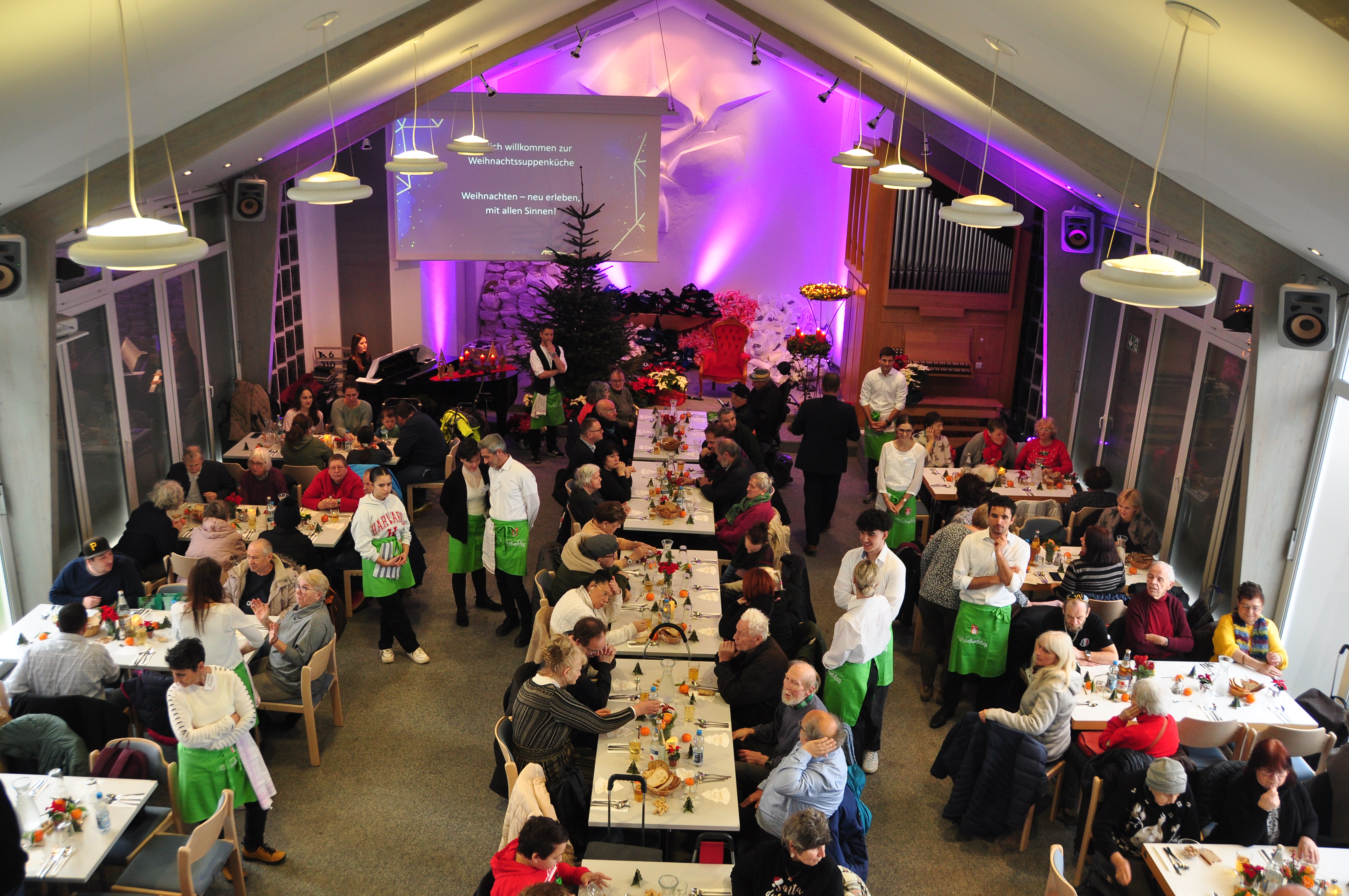 Dem Helferkreis ist es eine Herzensangelegenheit, Menschen in sozialen Notlagen, Bürgergeld-Empfängern, Wohnungslosen, Flüchtlingen und älteren Mitbürger zum Weihnachtsessen einzuladen und ihnen eine besinnliche Zeit in Gemeinschaft zu ermöglichen. „Die Bedürftigkeit wird von uns aber nicht kontrolliert“, erzählt Reinhard Knobloch, der Leiter der Suppenküche Nachschlag. „Der ‚Otto Normalbürger‘ ist bei uns ebenfalls willkommen. Schließlich möchten wir Menschen unterschiedlicher Gesellschaftsschichten zusammenbringen. Gerade an Weihnachten ist es uns wichtig, echte Teilhabe zu erleben.“