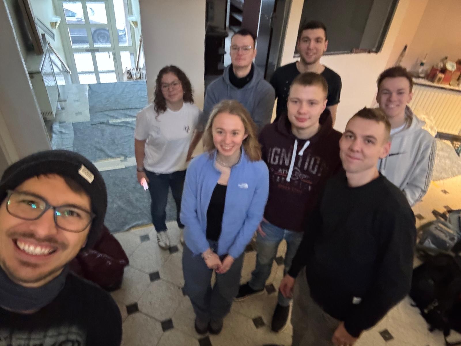 Mit viel Motivation, Musik im Hintergrund und richtig guter Team-Vibes wurden in den zukünftigen Zimmern kleinere und größere Schäden beseitigt, Wände ausgebessert und gestrichen — kurz gesagt: einmal ordentlich frisch gemacht. Es war für alle ein starkes Gefühl zu wissen, dass die eigene Arbeit direkt Menschen hilft, die gerade einen sicheren Ort brauchen.